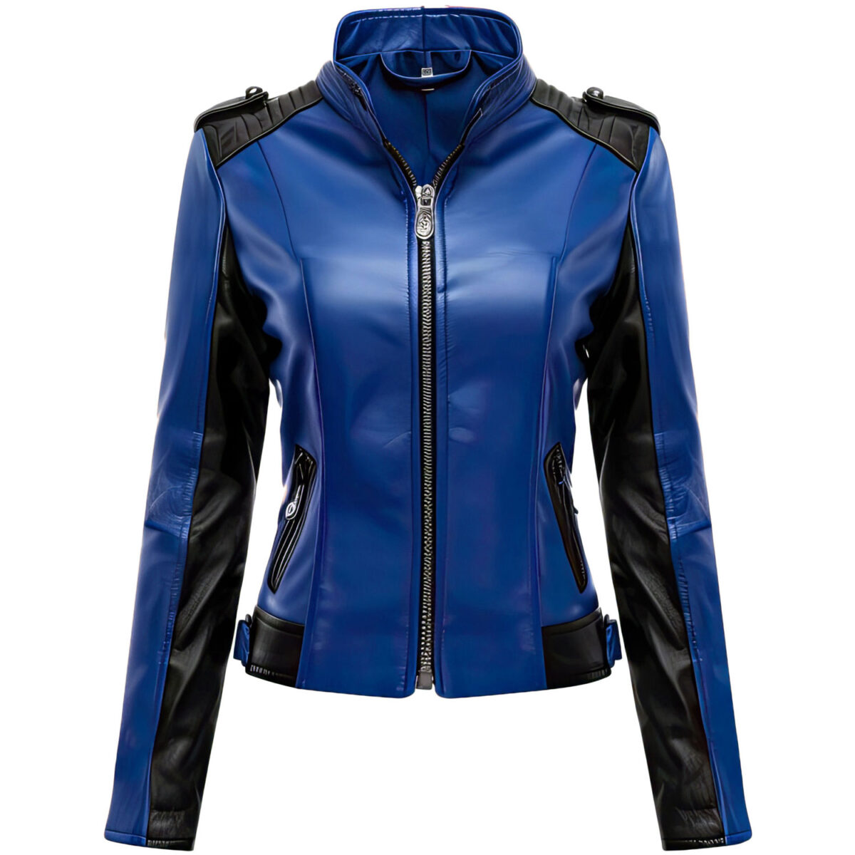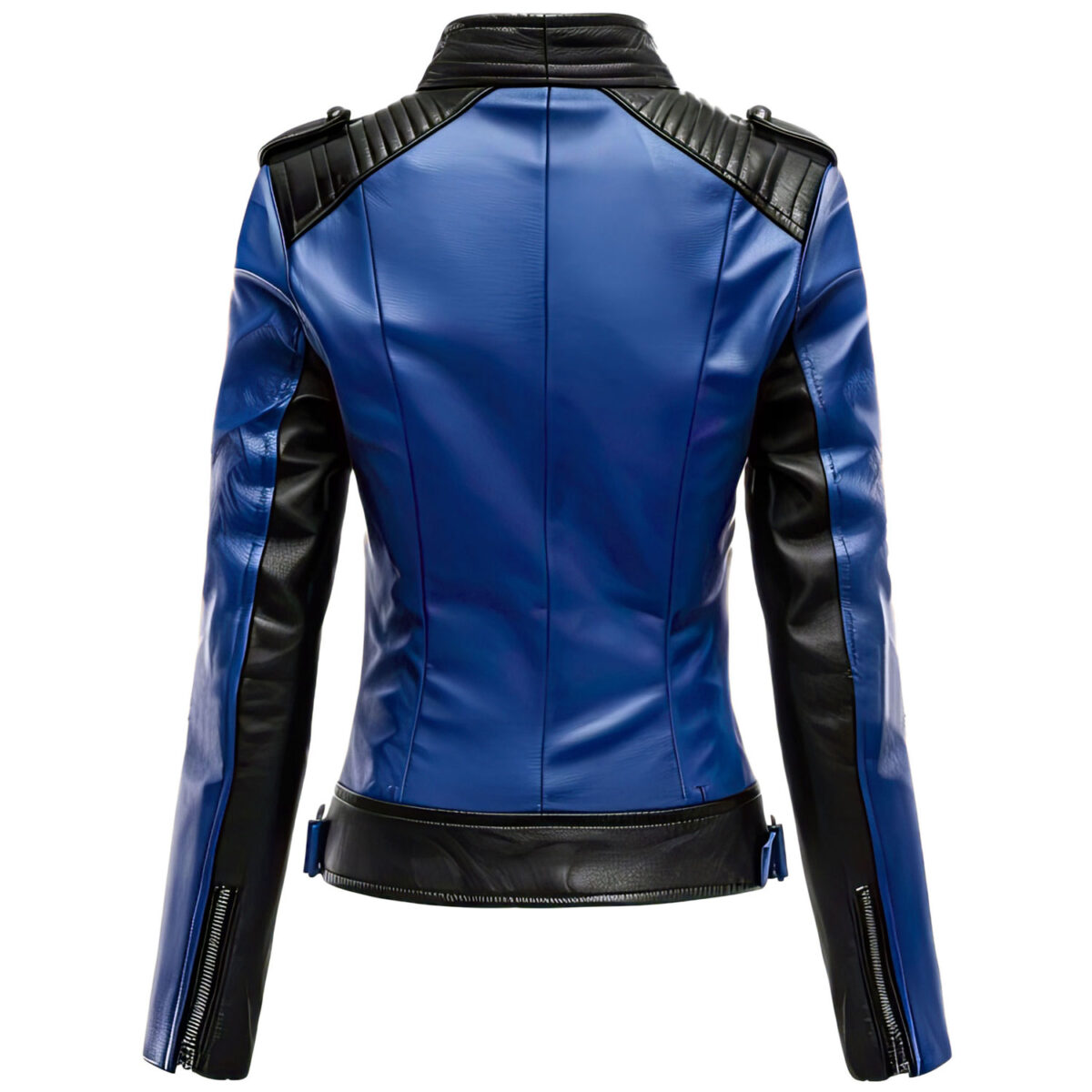 The Women’s Royal Blue Black Genuine Sheepskin Motorcycle Leather Jacket is a fashion-forward piece that doesn’t skimp on function. Made from striking royal blue genuine sheepskin with contrasting black accents, it’s a bold statement piece that’s as durable as it is stylish. The stand collar adds a refined edge to the jacket, while the front YKK zipper ensures a perfect fit, essential for riders and style enthusiasts alike. The slanted zipper pockets are smartly designed for convenience, keeping essentials close at hand. Quilted shoulder detailing not only adds an element of high fashion but also provides subtle padding. This sleek zip-up jacket is tailored for those who demand the best in their wardrobe—high-quality materials, exceptional craftsmanship, and timeless style.