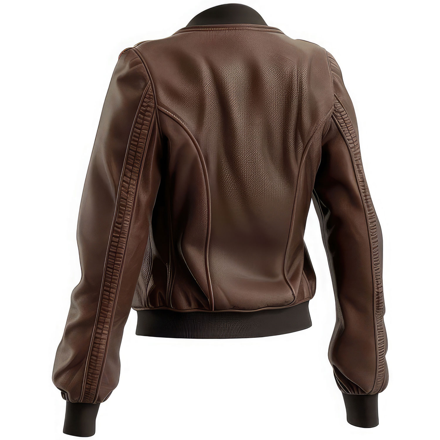 The Women’s Chocolate Brown Genuine Sheepskin Baseball Collar Smooth Zip-up Slim-fit Soft Rib Knit Lightweight Bomber Leather Jacket. This exquisite piece combines luxurious genuine sheepskin with a chic, streamlined design, making it a perfect choice for both casual and more dressed-up occasions. The baseball collar and slim-fit silhouette offer a modern zipper offers hassle-free operation and a secure fit. The lightweight nature of the jacket ensures it’s comfortable enough for all-day wear, yet the rib knitted cuffs and bottom hem add warmth and style. Whether you’re running errands or heading out for a night on the town, this bomber jacket is an ideal blend of comfort, style, and practicality.