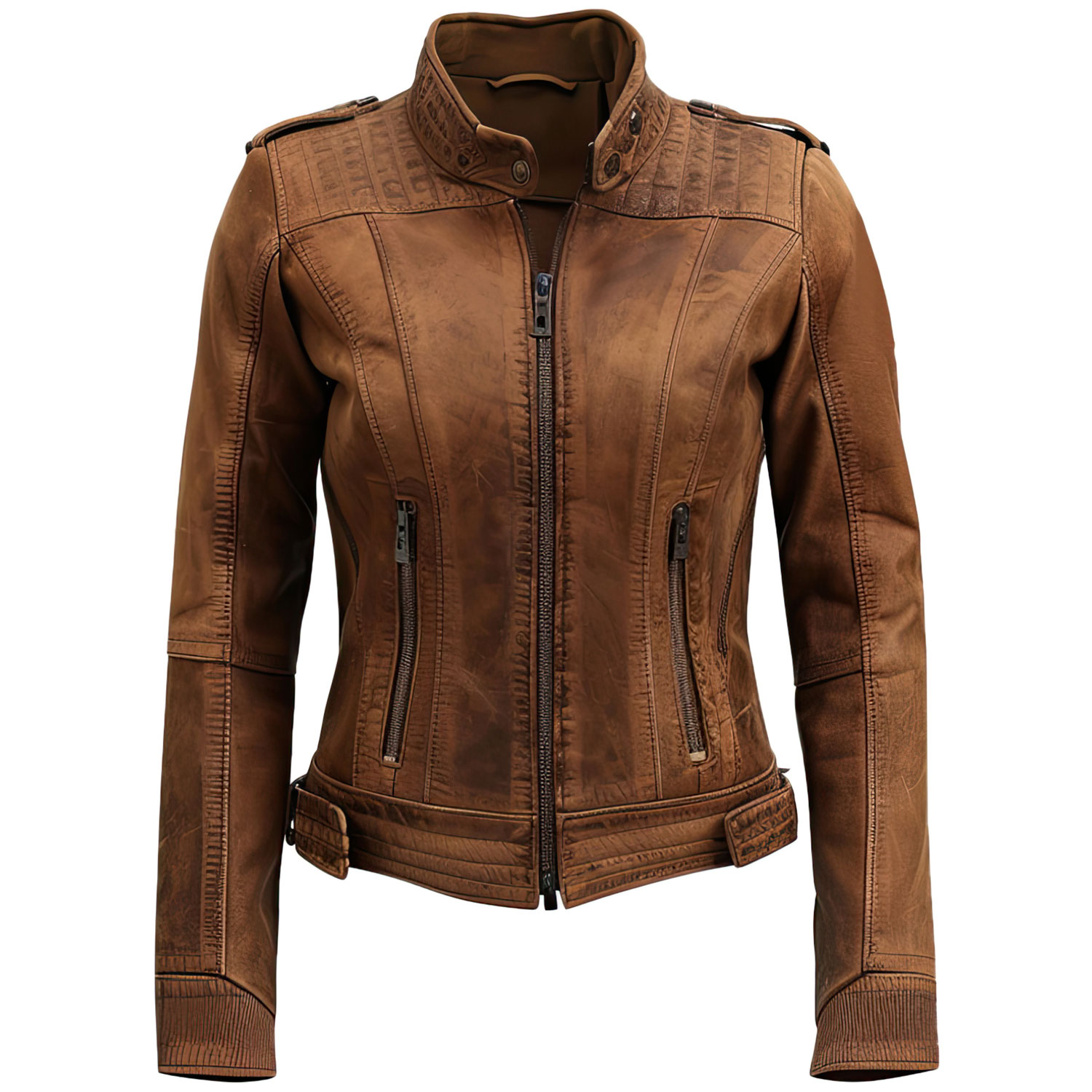 The Women’s Chocolate Brown Genuine Suede Stand Collar Casual Riding Outerwear. This motorbike leather jacket is exquisitely crafted from high-quality genuine suede, offering unparalleled durability and comfort. The chocolate brown hue adds a touch of timeless elegance, making it a versatile addition to any wardrobe. The stand collar with button closure provides added protection against the elements, while the YKK zipper ensures a secure fit. Functional slanted zipper pockets offer convenient storage for your essentials, and the adjustable zipper cuffs allow you to customize the fit. Whether you’re on a thrilling ride or enjoying a casual outing, this fashionable jacket is an essential piece for any modern woman’s closet.