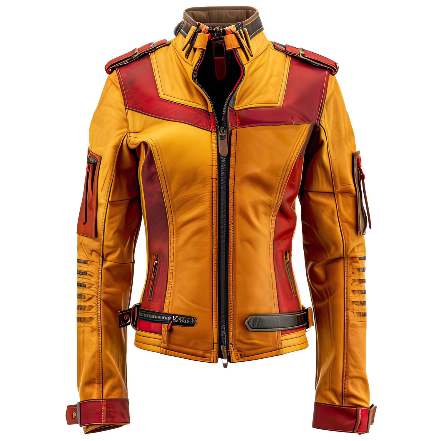 - Mustard Red Genuine Sheepskin: Exquisitely Crafted From Mustard Red Genuine Sheepskin, This Jacket Stands Out For Its Vibrant Color And Premium Quality.