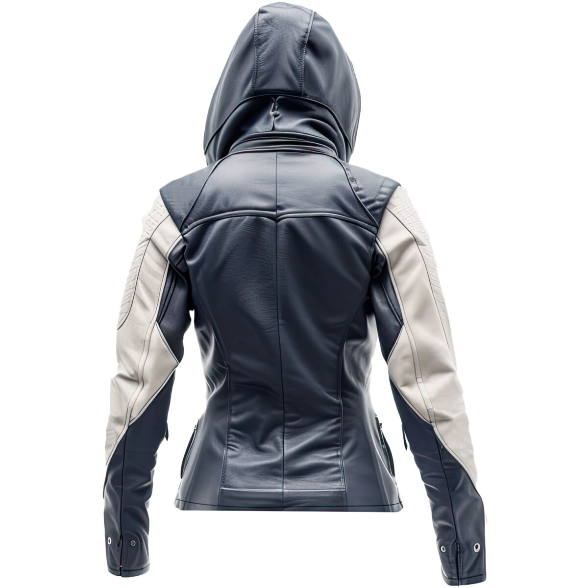 Be the first to review “Ladies Navy Blue White Casual Slim-Fit Biker Leather Hooded”