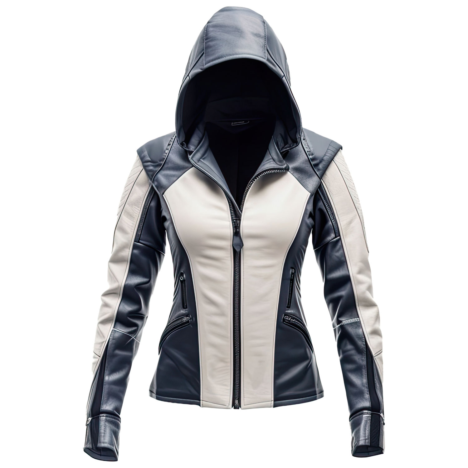 The Women’s Navy Blue White Genuine Sheepskin Motorbike Leather Jacket is a superb blend of functionality and fashion. This slim-fit jacket is expertly crafted from durable genuine sheepskin in a stylish Navy Blue and White color scheme, providing a luxurious feel and a sophisticated look. The inclusion of a hood not only adds an extra layer of warmth but also brings a modern edge to the classic rider design. The smooth front YKK zipper allows for easy wearing and a secure fit, enhancing the jacket’s sporty profile. Zipper pockets offer practical storage solutions for personal items, ensuring they remain safe during your rides. Lightweight yet durable, this leather jacket is perfectly suited for the motorbike enthusiast who does not want to compromise on style or comfort, making it an essential piece for any rider’s wardrobe.