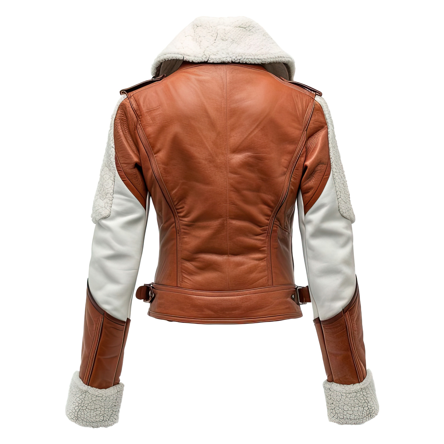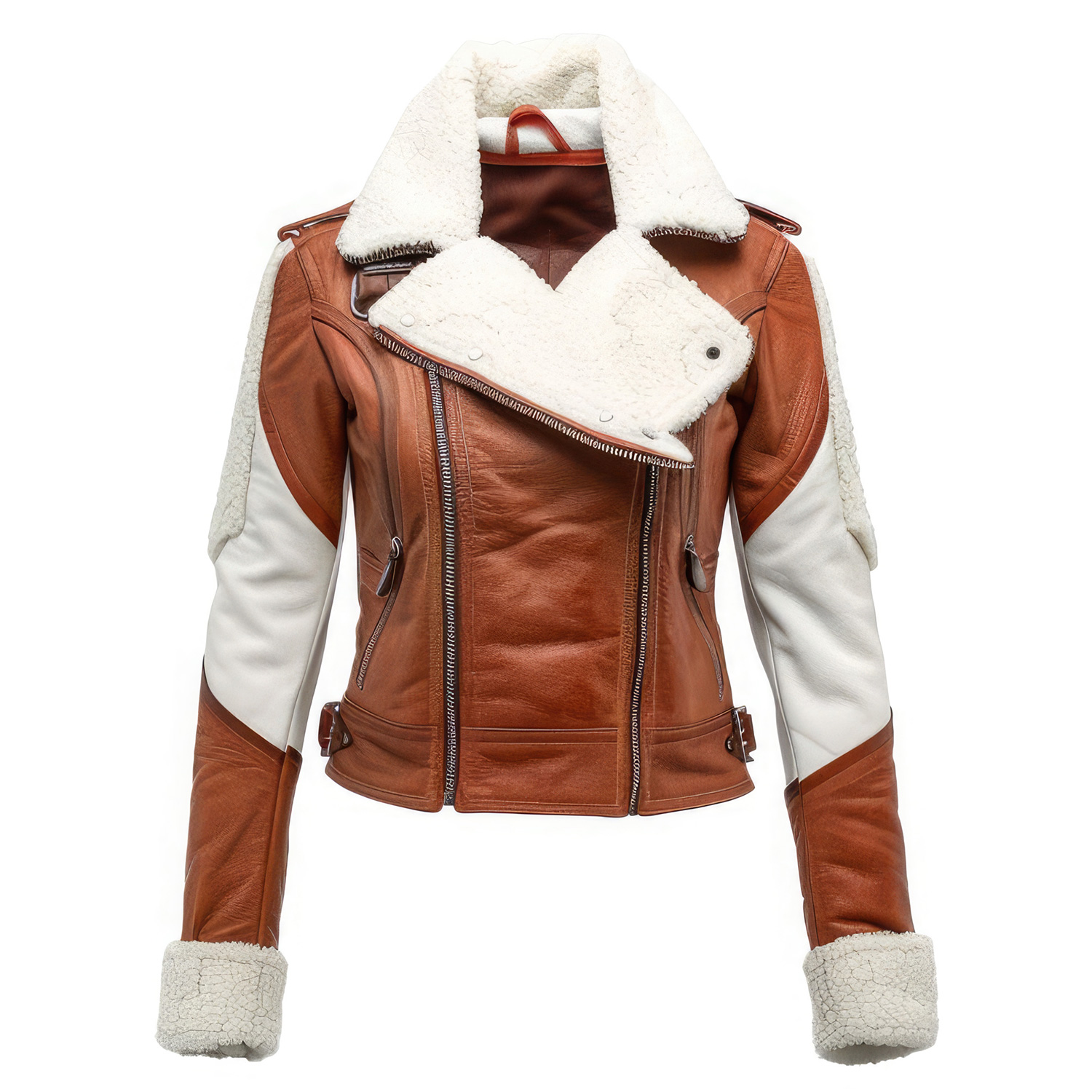 Introducing the Women’s Brown White Genuine Sheepskin Sherpa Shearling Faux Fur Collar Smooth Asymmetric Biker Rider Leather Jacket, a fusion of elegance, warmth, and edgy biker aesthetics. Crafted from high-quality genuine sheepskin leather, this jacket promises not only durability but also a plush feel against the skin. The sherpa shearling faux fur lapel collar and cuffs add a touch of luxury and provide unparalleled warmth, making it perfect for cooler days. The asymmetric YKK zipper closure and slanted zipper pocket blend functionality with a modern design, offering convenience and style. Whether you’re heading out for a ride or seeking a statement piece for your winter wardrobe, this jacket combines the best of biker style with the cozy comfort of sherpa shearling, making it a must-have for fashion-forward individuals.