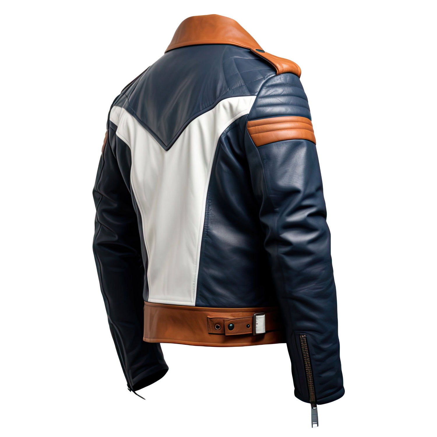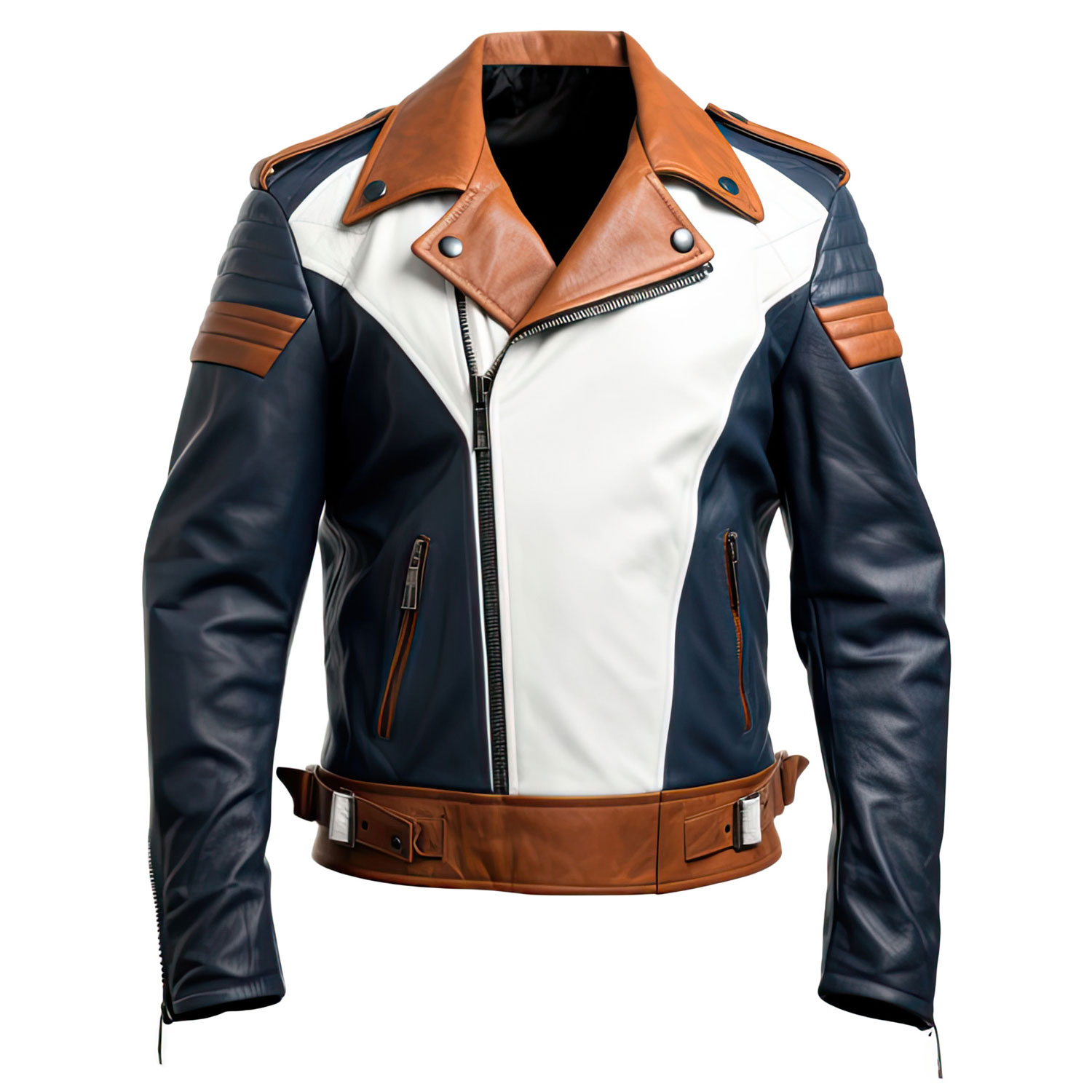 Men’s Navy Blue, Brown & White Sheepskin Rider Leather Jacket – Stylish & Bold