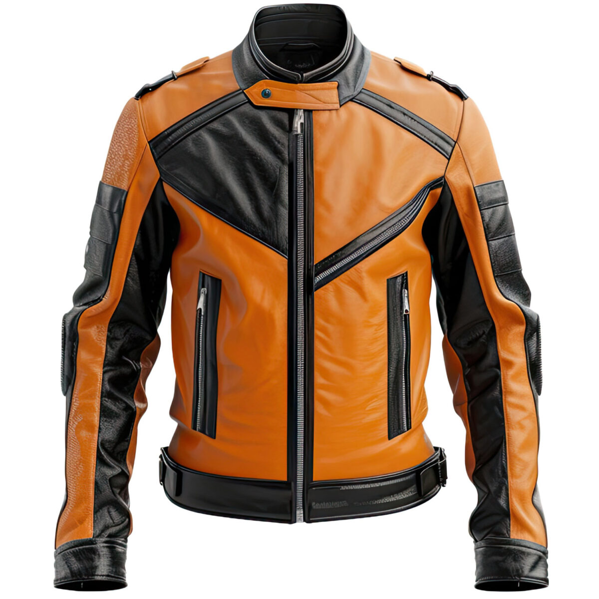 The Men’s Orange Black Genuine Sheepskin Stand Collar Sporty Rider Outfit Zip-up Fashionable Slim-fit Soft Racing Leather Jacket is the epitome of sporty elegance and functional design. Crafted from high-quality genuine sheepskin in a vibrant orange and black palette, this jacket stands out for its unique color combination and soft texture. The stand collar with strap closure adds a refined edge, while the front YKK zipper ensures a secure and snug fit. Practical slanted zipper pockets provide ample storage space, making it perfect for riders and fashion-forward individuals alike. Full sleeves with stylish detailing and zipper cuffs enhance the jacket’s racing-inspired look, making it a versatile addition to any wardrobe. Designed for both style and comfort, this slim-fit leather jacket is ideal for those who demand the best in fashion and functionality.
