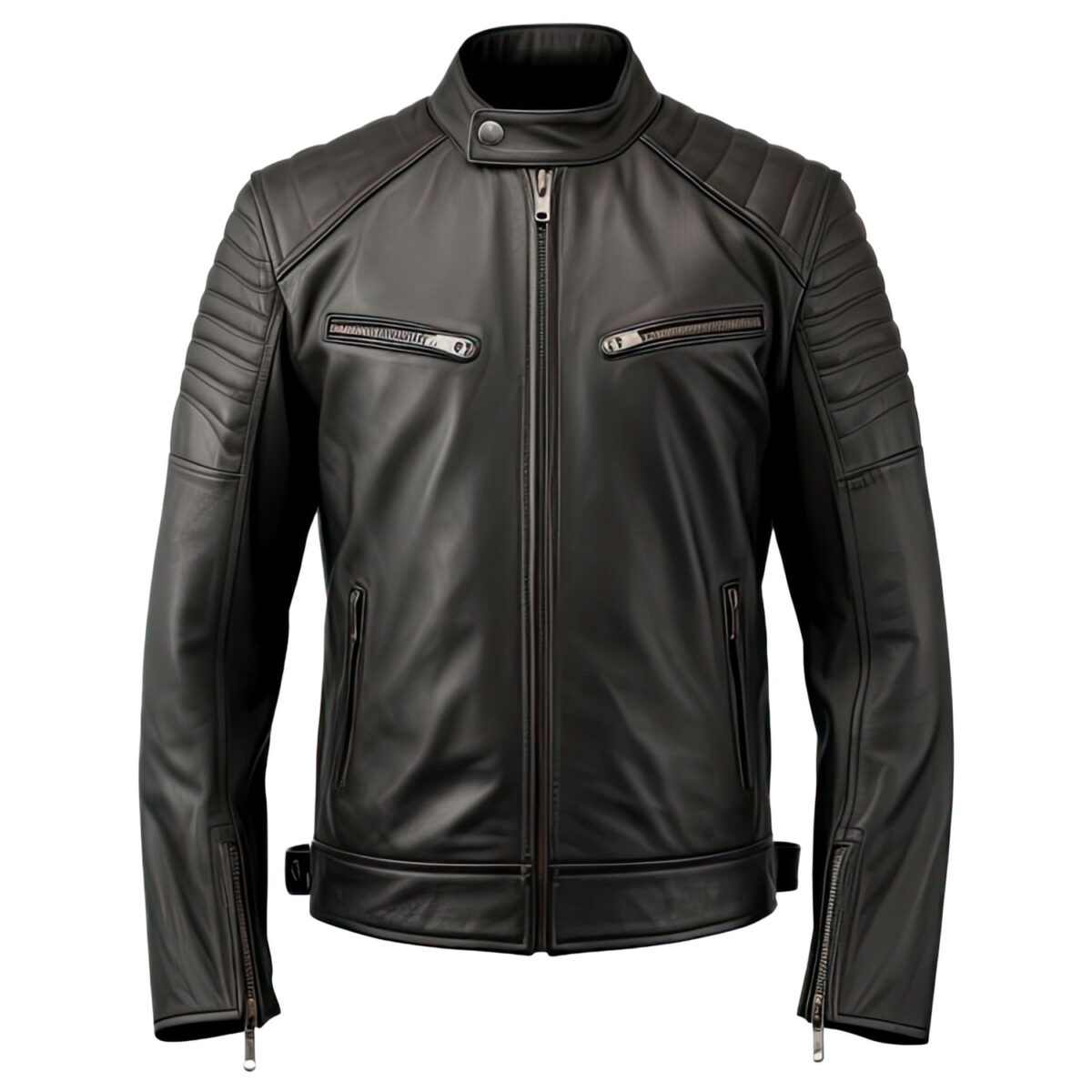 Men’s Black Biker Genuine Sheepskin Stand Collar Moto Racer Outerwear Quilted Multi-Zipper Smooth Casual Leather Jacket is a perfect embodiment of modern biker style and practicality. Made from premium genuine sheepskin leather, it presents a robust and stylish look in classic black. The stand collar, complete with a snap button, adds a refined edge to the jacket’s aggressive Moto racer aesthetic. A front YKK zipper closure ensures a secure and comfortable fit, essential for any ride. The jacket features multiple pockets, providing ample storage space without compromising its streamlined design. Unique quilted detailing on the shoulders, sleeves, and cuffs, along with zippers on both the front and back, add a distinctive touch, making it ideal for those who value both fashion and functionality in their biking attire.
