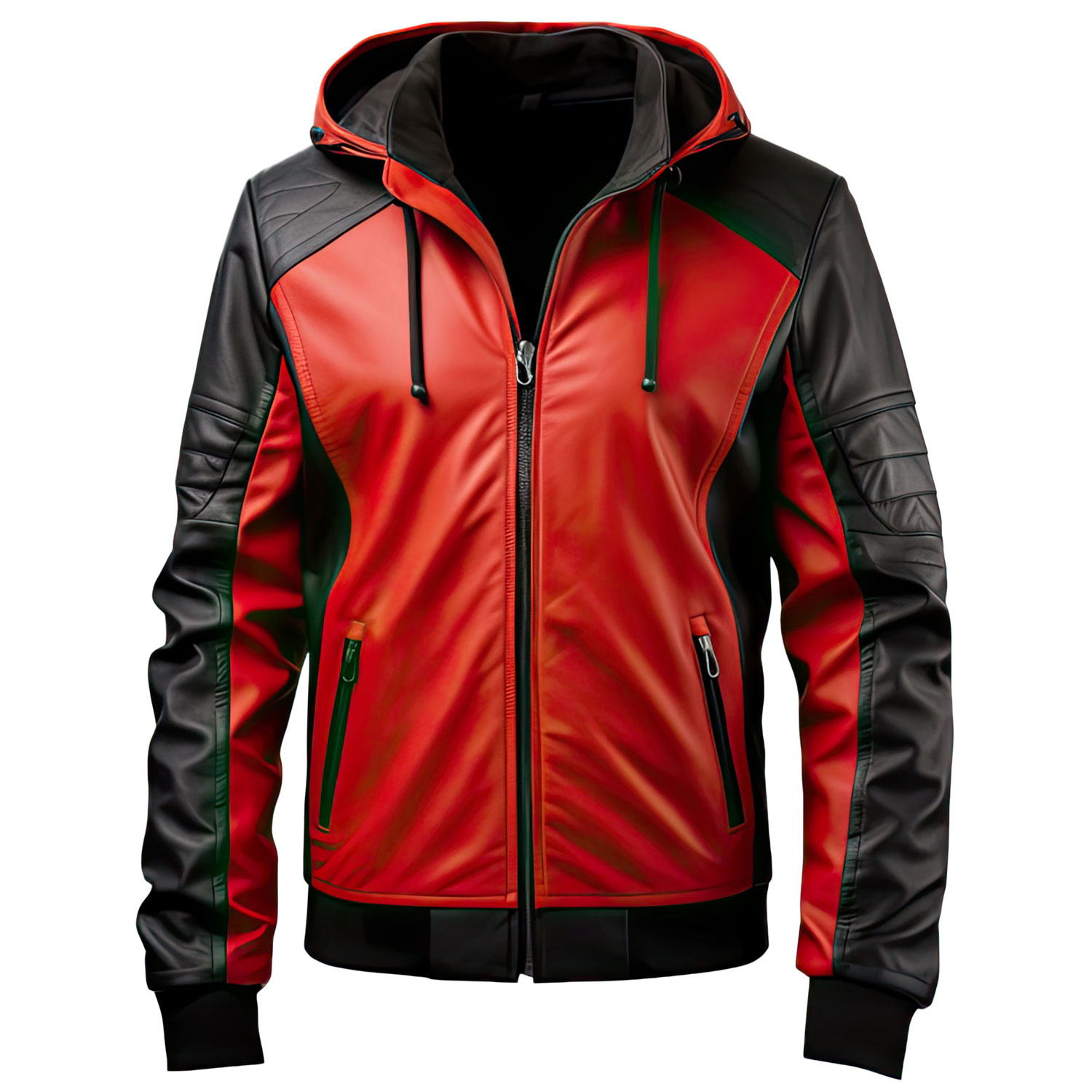 Men’s Red & Black Sheepskin Bomber Hood Leather Jacket – Lightweight Casual Style