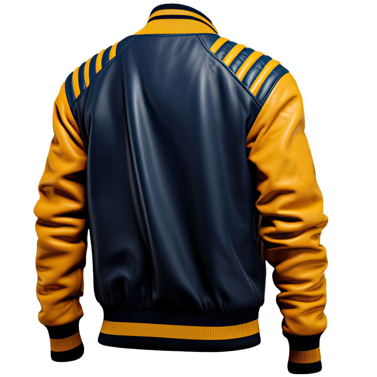 - High-Quality Authentic Sheepskin: Crafted From Authentic Sheepskin, This Men’s Blue Mustard Varsity Leather Jacket Exudes Elegance And Durability.