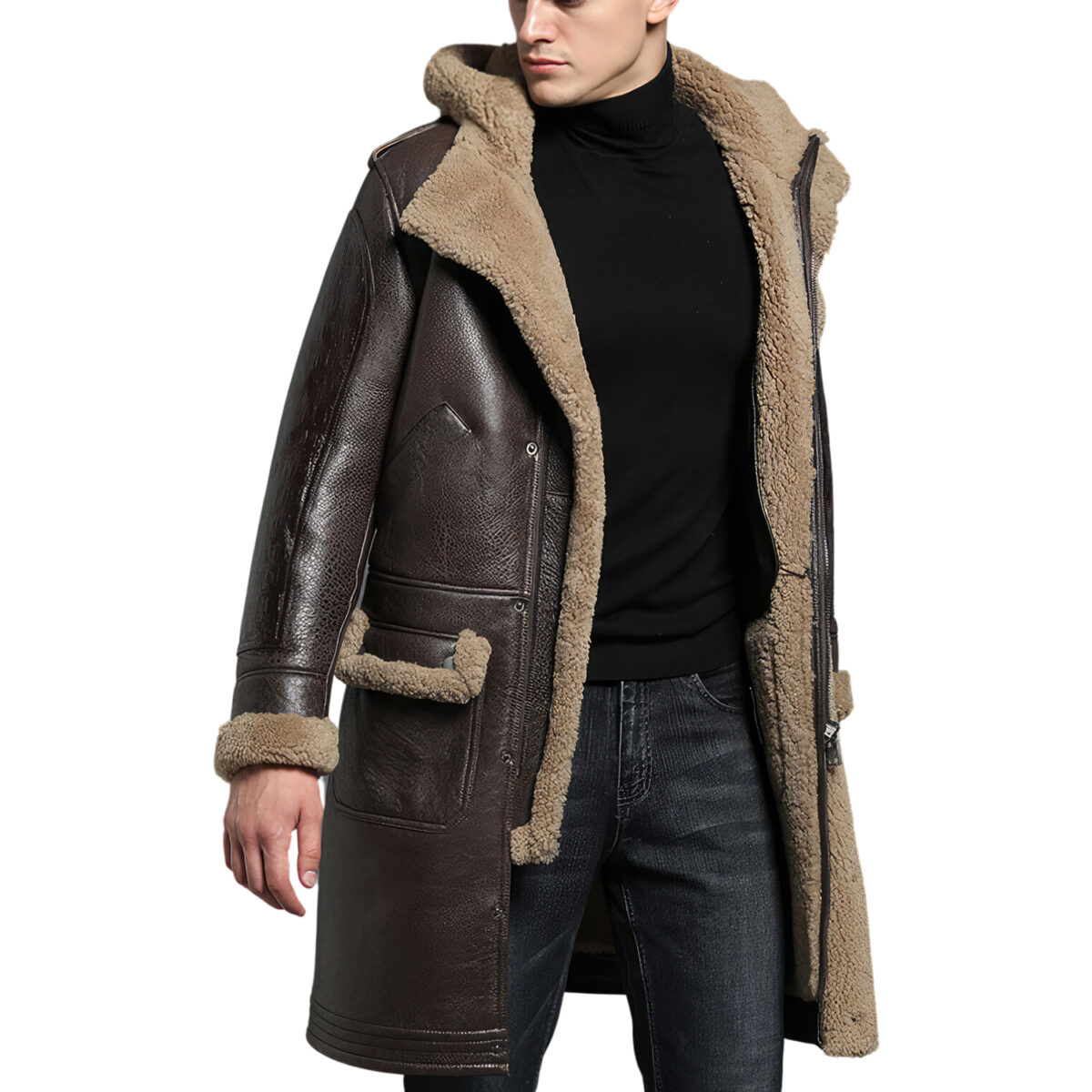 Stay warm and stylish with the Men’s Brown Genuine Sheepskin Leather Coat. Crafted from authentic sheepskin leather, this coat offers a luxurious feel and superior durability. Lined with cozy Sherpa shearling faux fur, it provides exceptional warmth, perfect for those cold winter months. This jacket features a hood for added protection against the elements and multiple pockets for convenient storage. Its design takes inspiration from vintage military uniforms, adding a rugged, retro touch to your wardrobe. Whether you’re braving the winter winds or simply want to make a fashion statement, this hooded leather coat is an ideal choice.