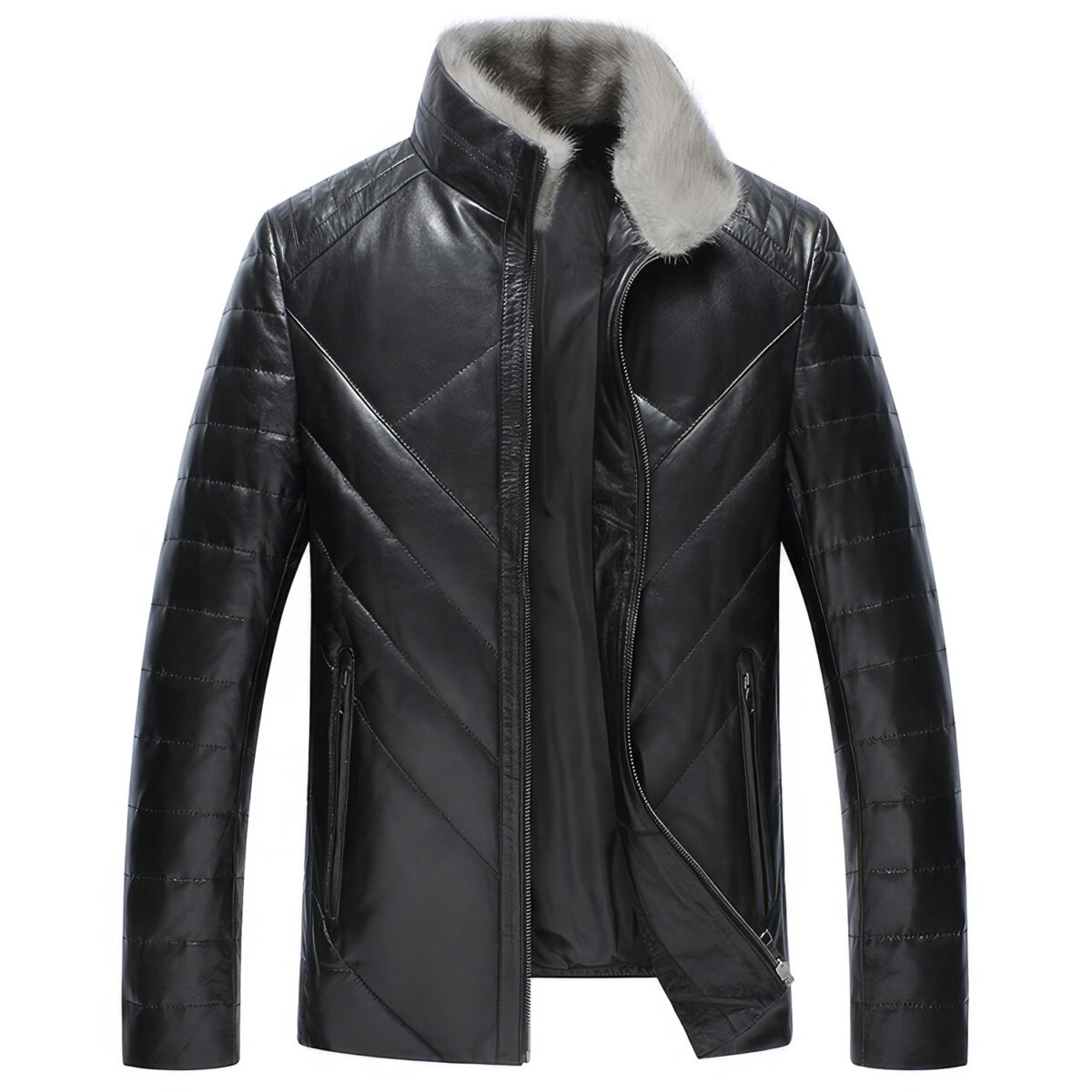 Be the first to review “Men’s Black Genuine Sheepskin Faux Fur Collar Winter Warm Puffer Leather Jacket”