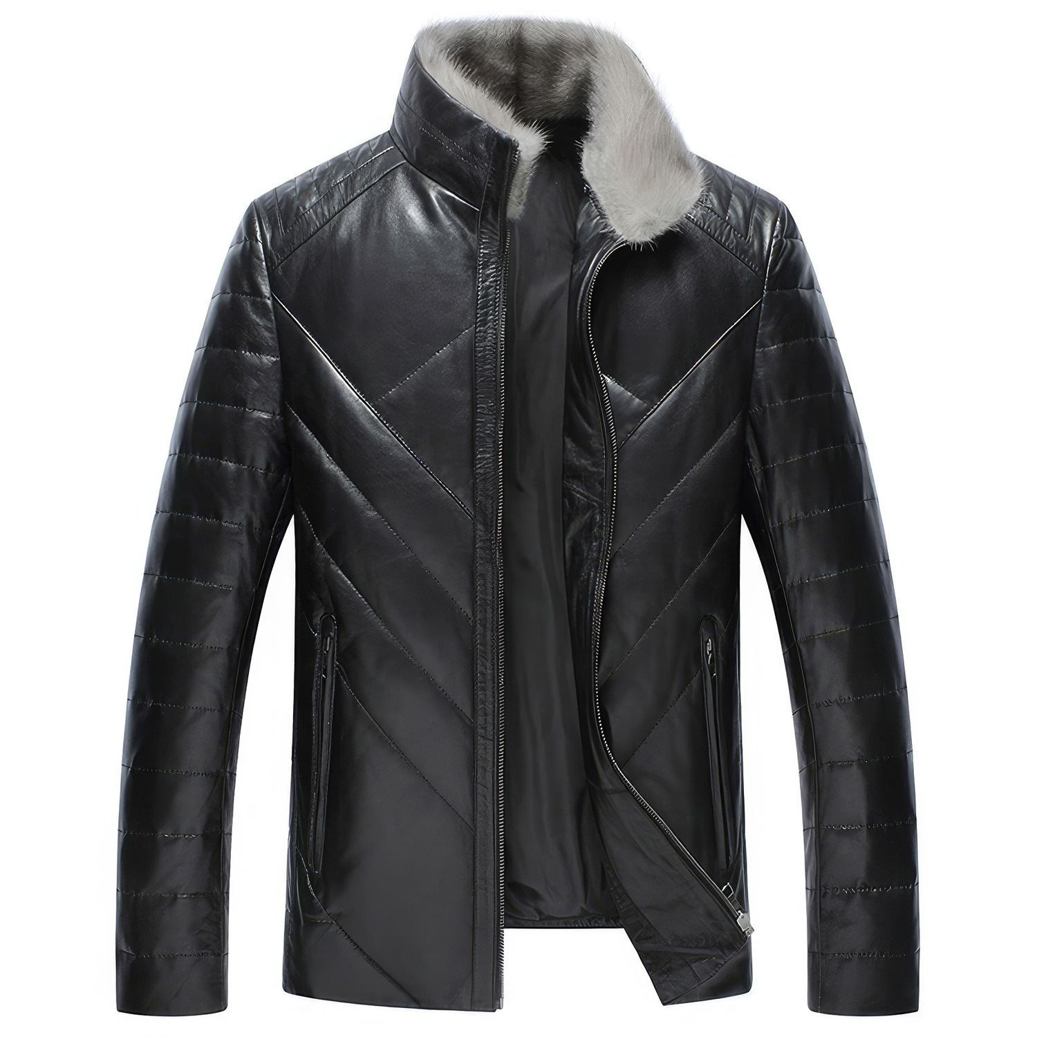 Stay warm and stylish this winter with the Men’s Black Genuine Sheepskin Faux Fur Collar Quilted Shoulders Padded Thick Winter Warm Puffer Leather Jacket. Made from premium genuine sheepskin leather and synthetic polyester filling, this jacket offers superior insulation and comfort in cold weather. The luxurious faux fur stand collar and quilted design add elegance and warmth, while multiple pockets provide practical storage for your essentials. Featuring a reliable YKK zipper closure, this fashionable puffer leather jacket is the perfect addition to your winter wardrobe.