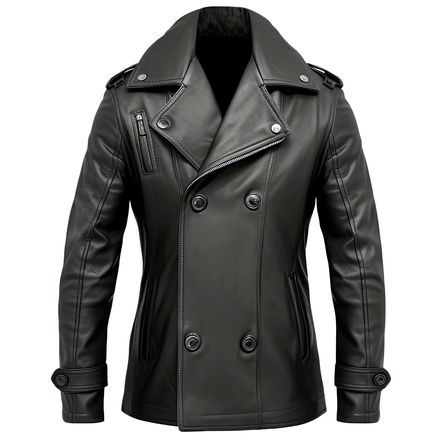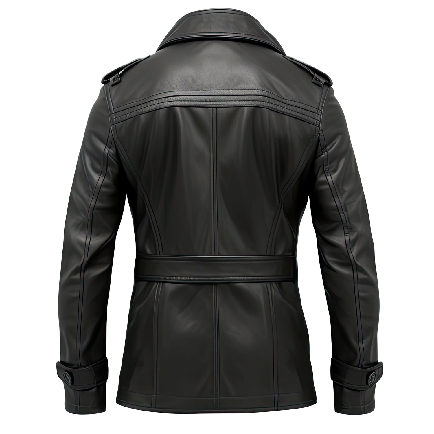 The Men’s Black Genuine Sheepskin Notch Lapel Collar Classy Casual Business Overcoat Double Breasted Leather Trench Coat is the epitome of elegance and practicality. Made from the finest genuine sheepskin leather, it offers not only unparalleled durability but also a luxurious feel. The notch lapel collar lends a classic and sophisticated air, making it suitable for a range of occasions, from business meetings to casual outings. The double breasted flat button closure adds a touch of fashionable flair, while the slanted pockets provide convenient storage without compromising style. The unique belt straps on the sleeves enhance the coat’s distinctive charm. This trench coat is perfect for the modern man who values a combination of style, functionality, and quality in their outerwear.