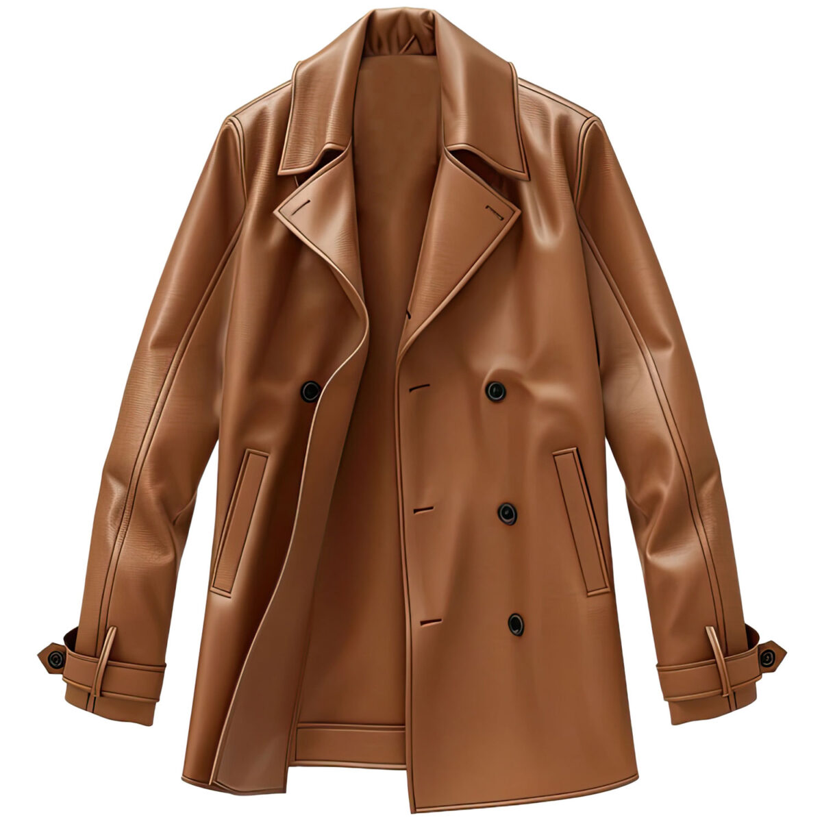 The Men’s Chocolate Brown Genuine Sheepskin Notch Lapel Collar Double Breasted Formal Outerwear Stylish Lightweight Warm Leather Pea Coat is the epitome of classic style meets modern functionality. Crafted from the softest genuine sheepskin, it promises both comfort and elegance. The coat’s standout feature, a distinguished notch lapel collar, sets a tone of formality that pairs well with the double-breasted button closure of traditional pea coats. Practical slanted pockets offer convenient storage, while the design retains a sleek, streamlined silhouette. Full sleeves with strapped cuffs add a touch of character and ensure a perfect fit. This leather pea coat is a versatile addition to any wardrobe, ideal for those seeking a garment that provides both warmth and a sharp, tailored look in cooler climates.