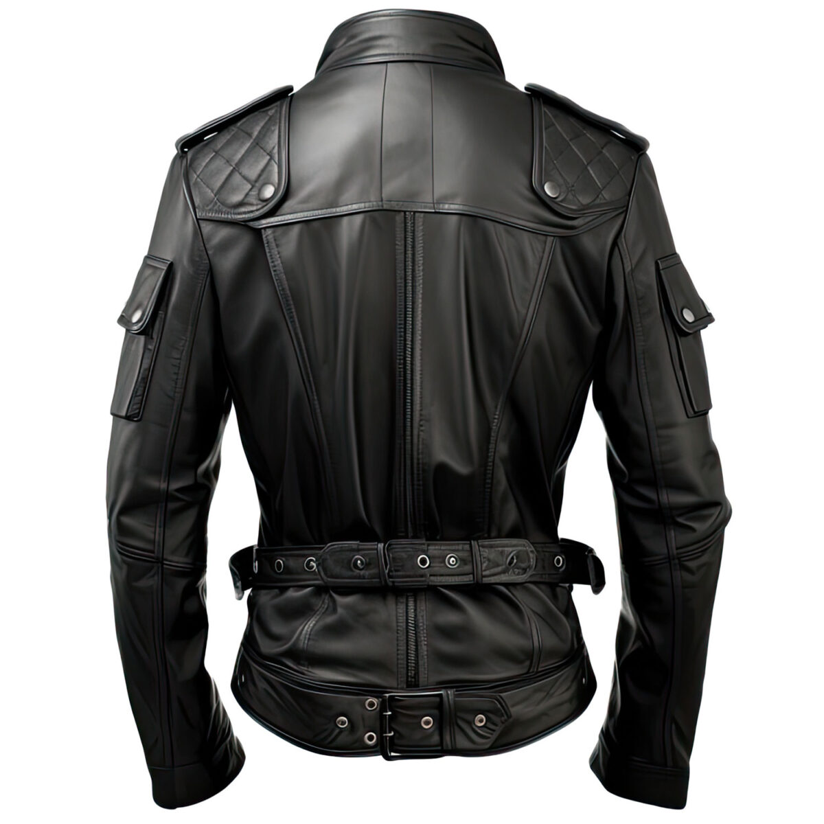 Introducing the men’s black genuine sheepskin café racer stand collar punk sleek riding multi zipper sports leather jacket, the perfect blend of style, comfort, and functionality. Crafted with high-quality genuine sheepskin, this jacket not only provides a luxurious feel but also durability for long-term use. The stand collar with snap button closure adds a refined touch, while the front YKK zipper and multiple slanted zipper pockets offer both security and convenience. The adjustable waist buckle belt allows for a custom fit, ensuring that you look and feel your best whether you’re riding or enjoying a casual outing. This jacket is an essential addition to the wardrobe of the fashion-forward man seeking a blend of classic style and modern edge.