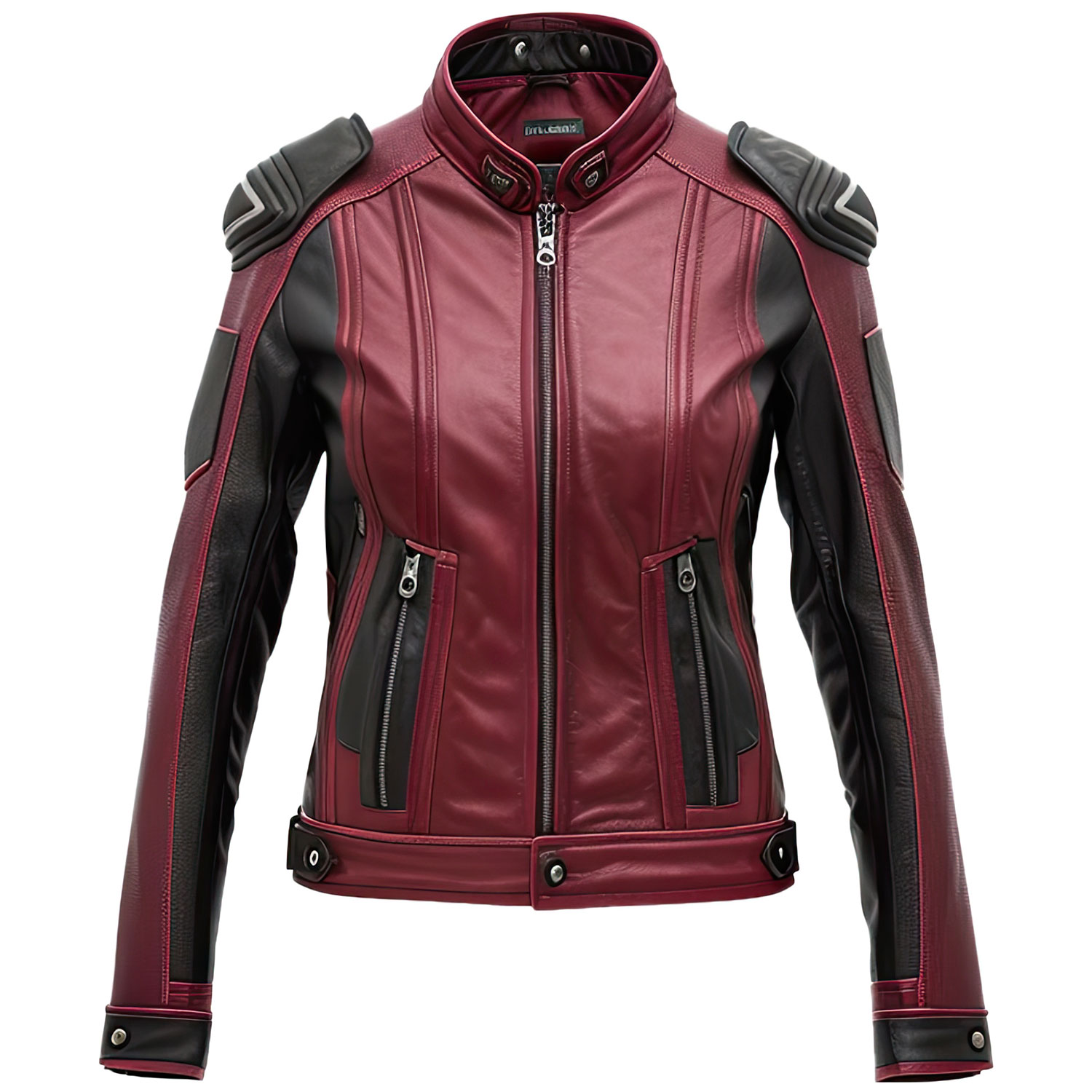 Be the first to review “Ladies Maroon & Black Sheepskin Collar Slim-Fit Zip-up Biker Lather jacket”